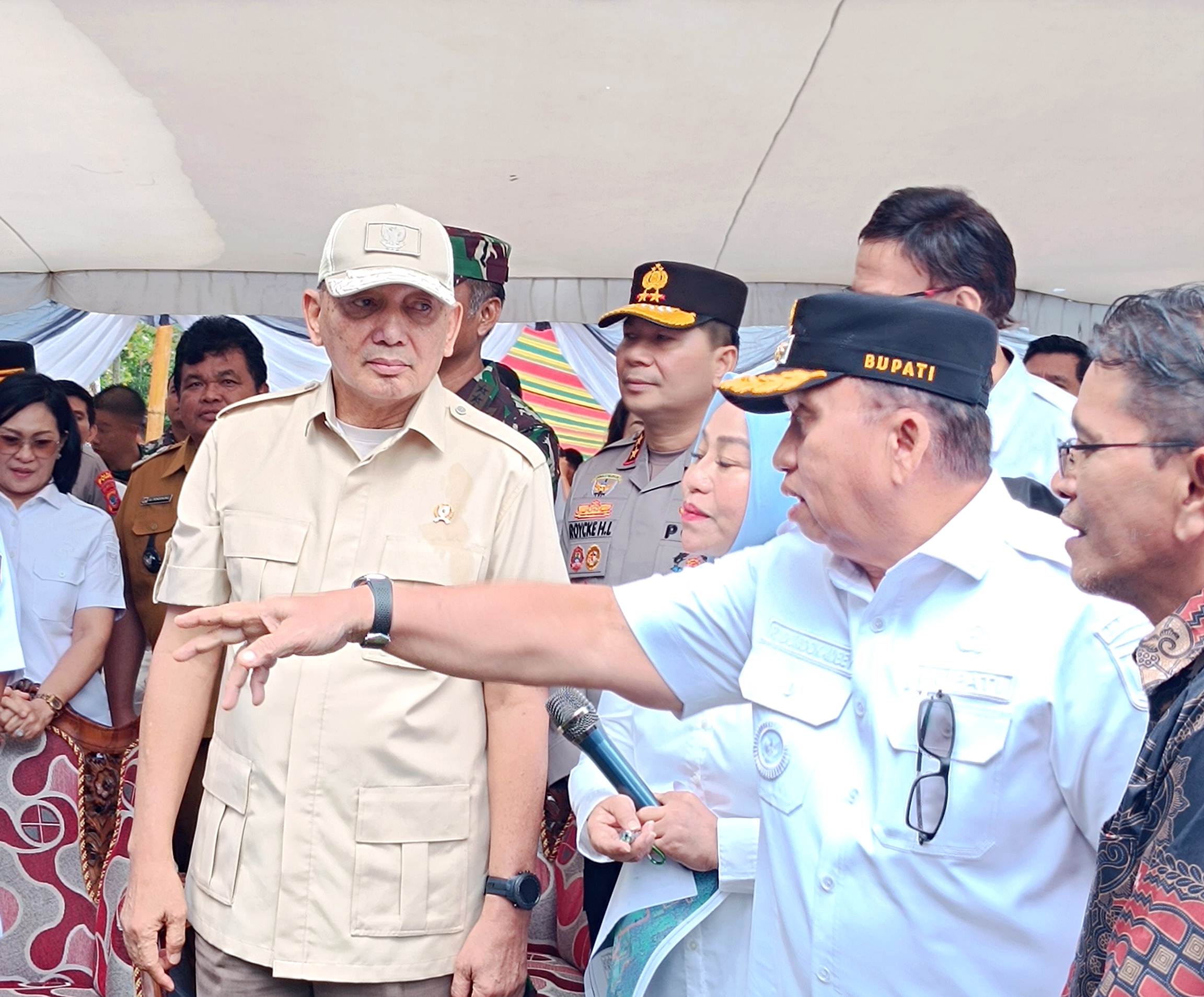 JEJAKSULUT.COM, Minahasa – Bupati Minahasa Robby Dondokambey mendampingi langsung Menteri Pertahanan RI Letjen TNI (Purn) Sjafrie Sjamsoeddin saat meninjau lokasi pembangunan SMA Unggulan Garuda Nusantara.