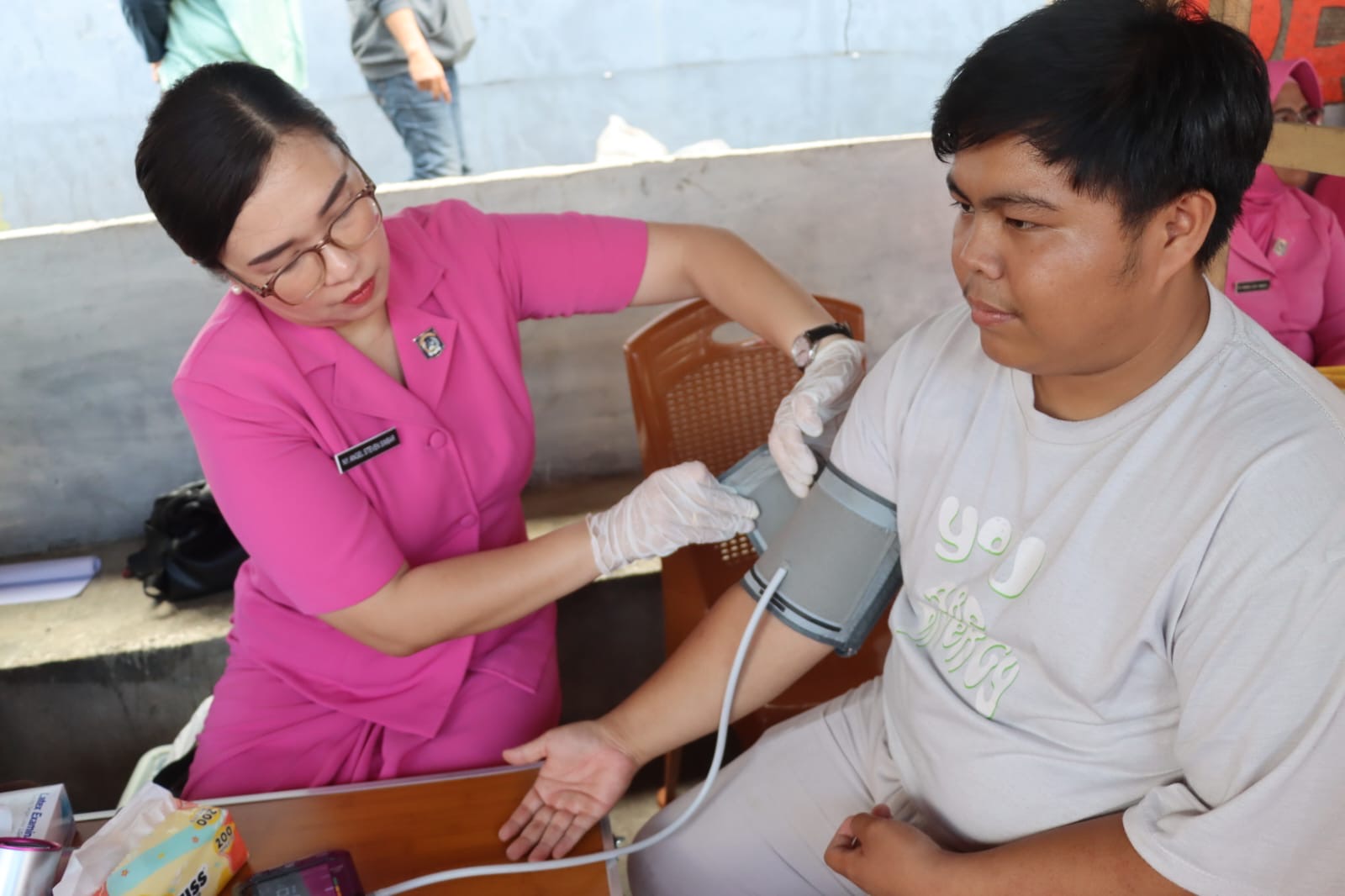 Bersama Klinik Paratama Polres Minahasa dan Sie Dokkes yang dipimpin Aiptu Yulie Kaeng, Bhayangkari turut ambil bagian dalam pelaksanaan bakti kesehatan bagi para tukang ojek, Kamis (26/6/2025).