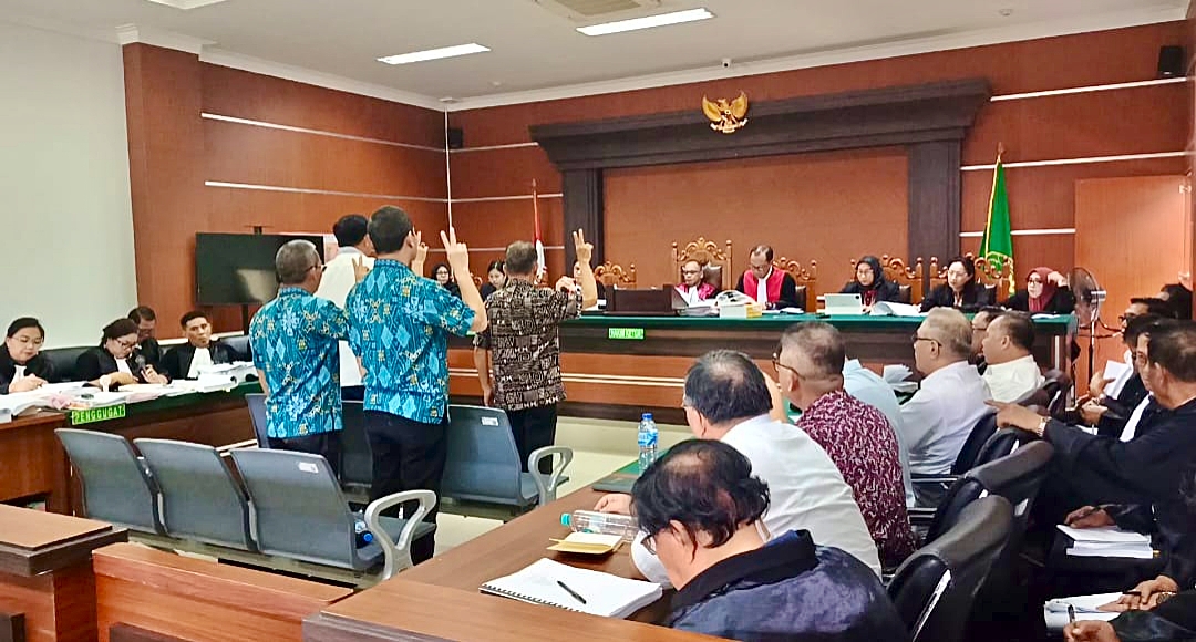 Lima terdakwa yang hadir antara lain mantan Kepala BPKAD Sulut Jeffry Korengkeng, mantan Asisten III Asiano Gemmy Kawatu, Ketua Sinode GMIM Hein Arina, mantan Karo Kesra Fereydi Kaligis, dan mantan Sekprov Sulut Steve Kepel.