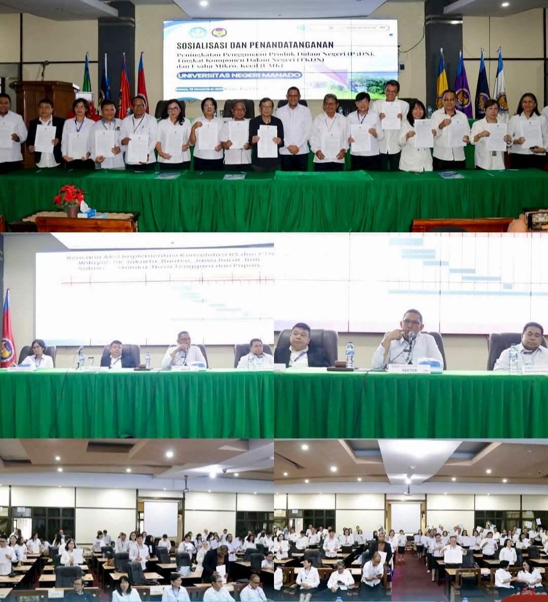 JEJAKSULUT.COM, Minahasa – Universitas Negeri Manado (UNIMA) melaksanakan kegiatan Sosialisasi dan Penandatanganan Peningkatan Penggunaan Produk Dalam Negeri (P3DN), Tingkat Komponen Dalam Negeri (TKDN), dan Usaha Mikro Kecil (UMK) pada Selasa, 18 November 2025.