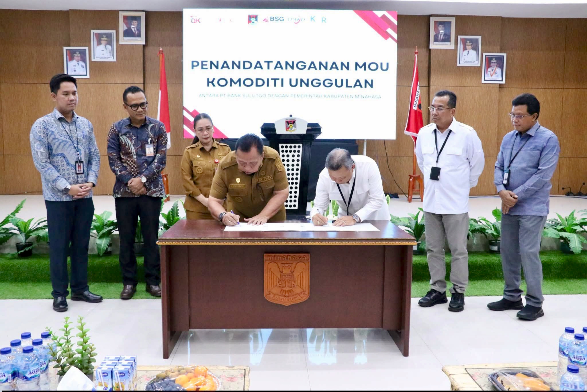 JEJAKSULUT.COM, Minahasa– Pemerintah Kabupaten (Pemkab) Minahasa resmi menjalin kerja sama dengan PT Bank SulutGo melalui Penandatanganan MoU Perjanjian Kerja Sama Komoditi Unggulan.