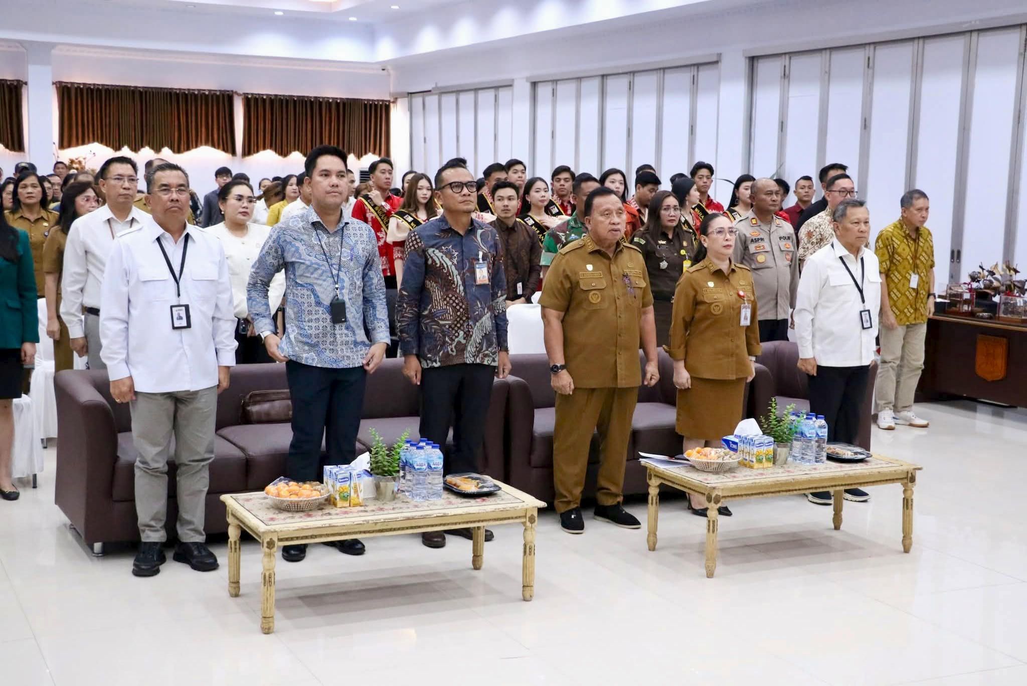 Kegiatan ini juga dirangkaikan dengan launching program Kredit Usaha Rakyat (KUR) Bohusami, berlangsung di Ruang Sidang Kantor Bupati Minahasa, Senin (8/12/2025).