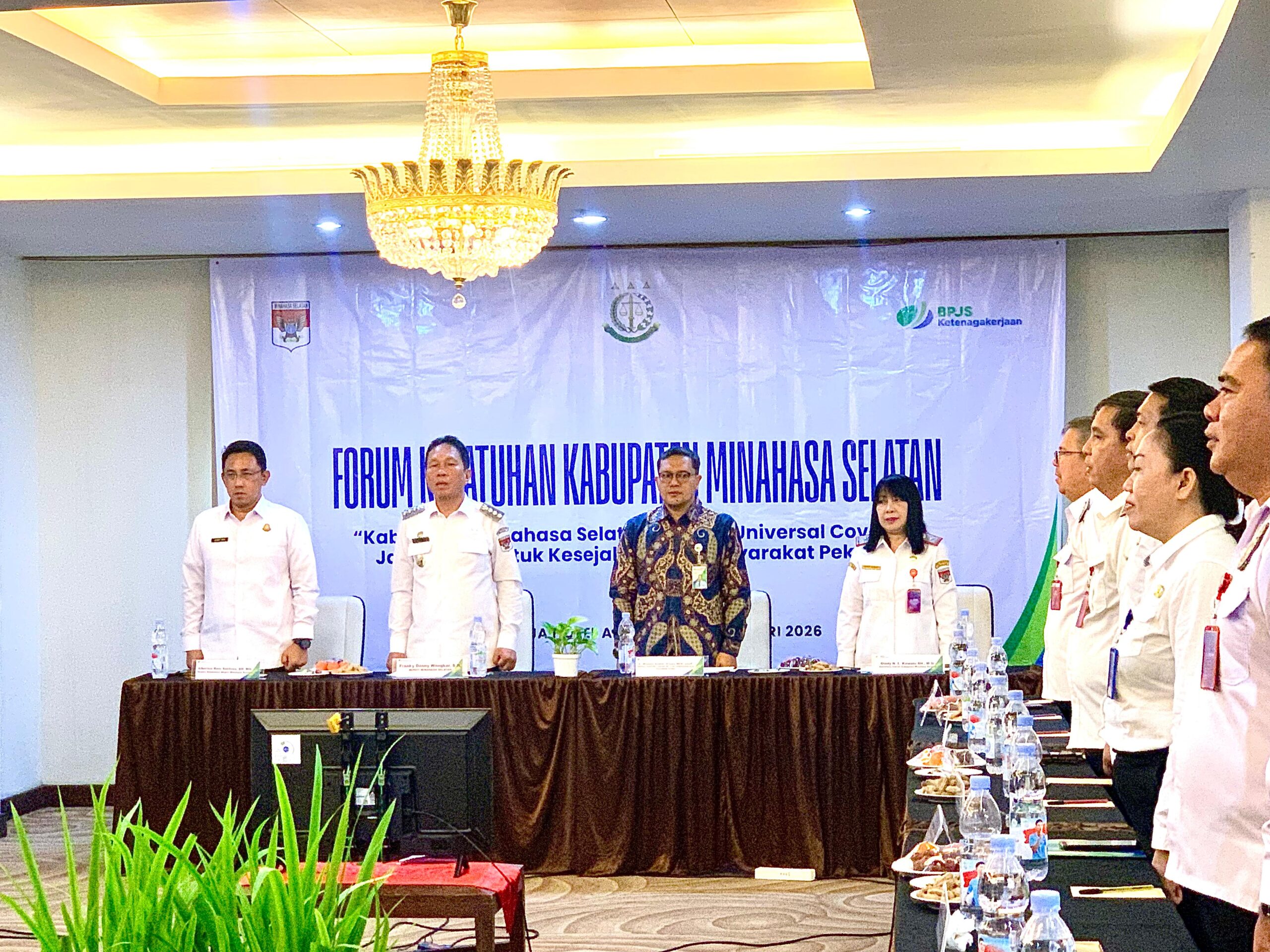 Hadir dalam kegiatan tersebut Sekretaris Daerah (Sekda) Kabupaten Minahasa Selatan, Glady Kawatu, S.H., M.Si., bersama para Pejabat Pimpinan Tinggi Pratama, Pejabat Administrator, dan segenap jajaran Pemerintah Kabupaten, serta segenap Jajaran dan Anggota Forum Kepatuhan Program Jaminan Sosial Ketenagakerjaan Kabupaten. (Orel)